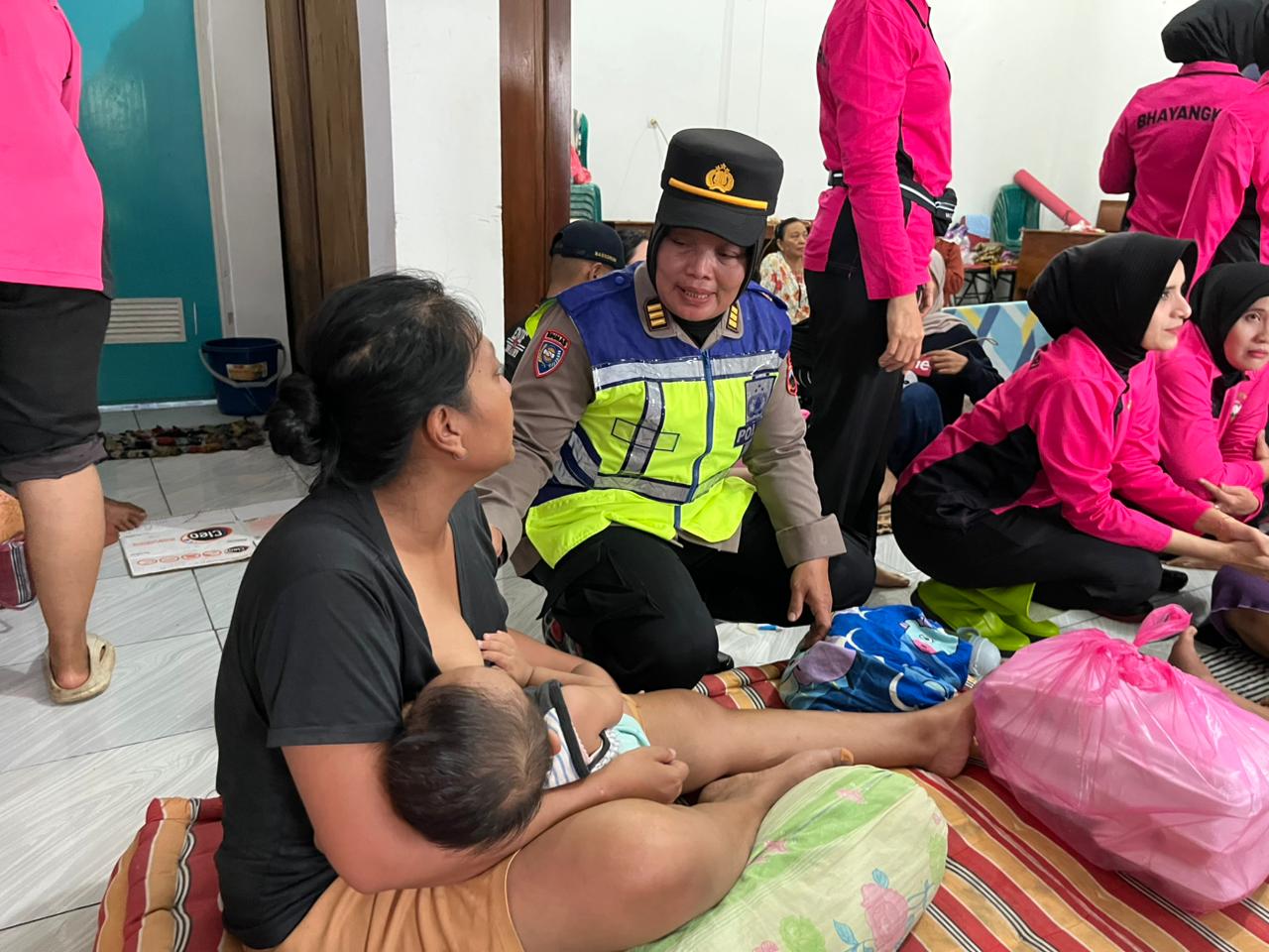 "Kami hadir tidak hanya sebatas pengamanan, tetapi juga memberikan dukungan emosional kepada warga terdampak banjir, ujar Kapolresta Pati melalui kabag SDM Polresta Pati Kompol Tyas.