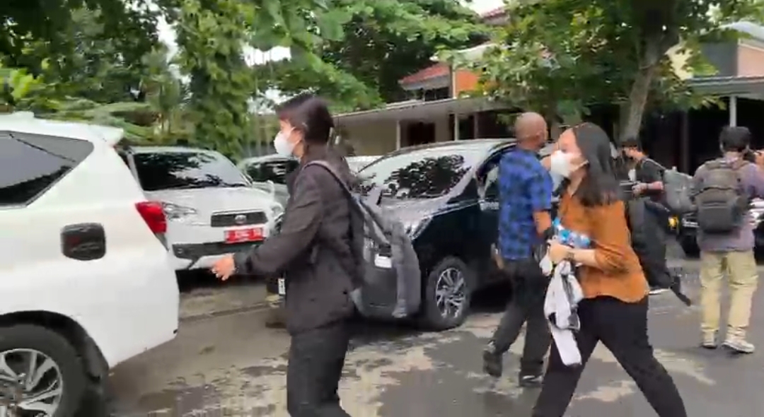 Detik detik tim KPK yang terdiri laki laki dan perempuan itu, berjalan dengan kawalan ketat polisi menuju empat mobil yang telah disiapkan.