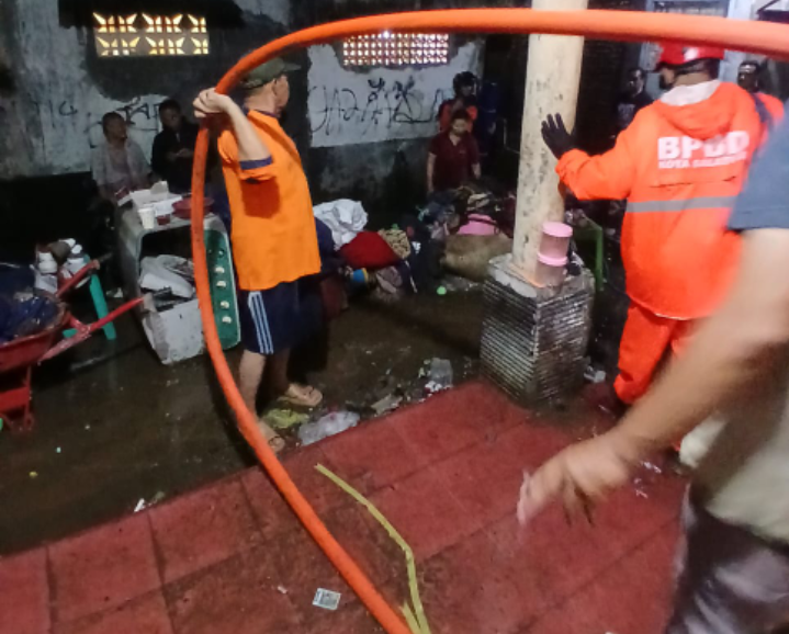 "Kejadian tersebut imbas dari saluran air yang ada diatas pemukiman warga yang meluap akibat dari sumbatan sampah, dan warga terdampak meliputi 3 Kepala Keluarga (KK)," kata Pj Sekda Muthoin, Senin 16 Februari 2026, dini hari.