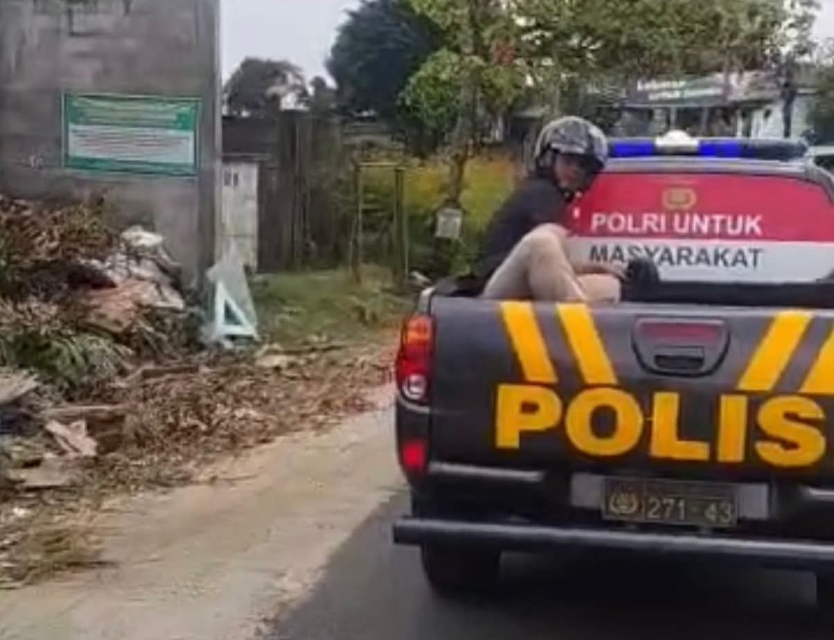 Polisi membekuk pelaku yang dievakuasi ke dalam mobil patroli Polsek Bae Kudus--