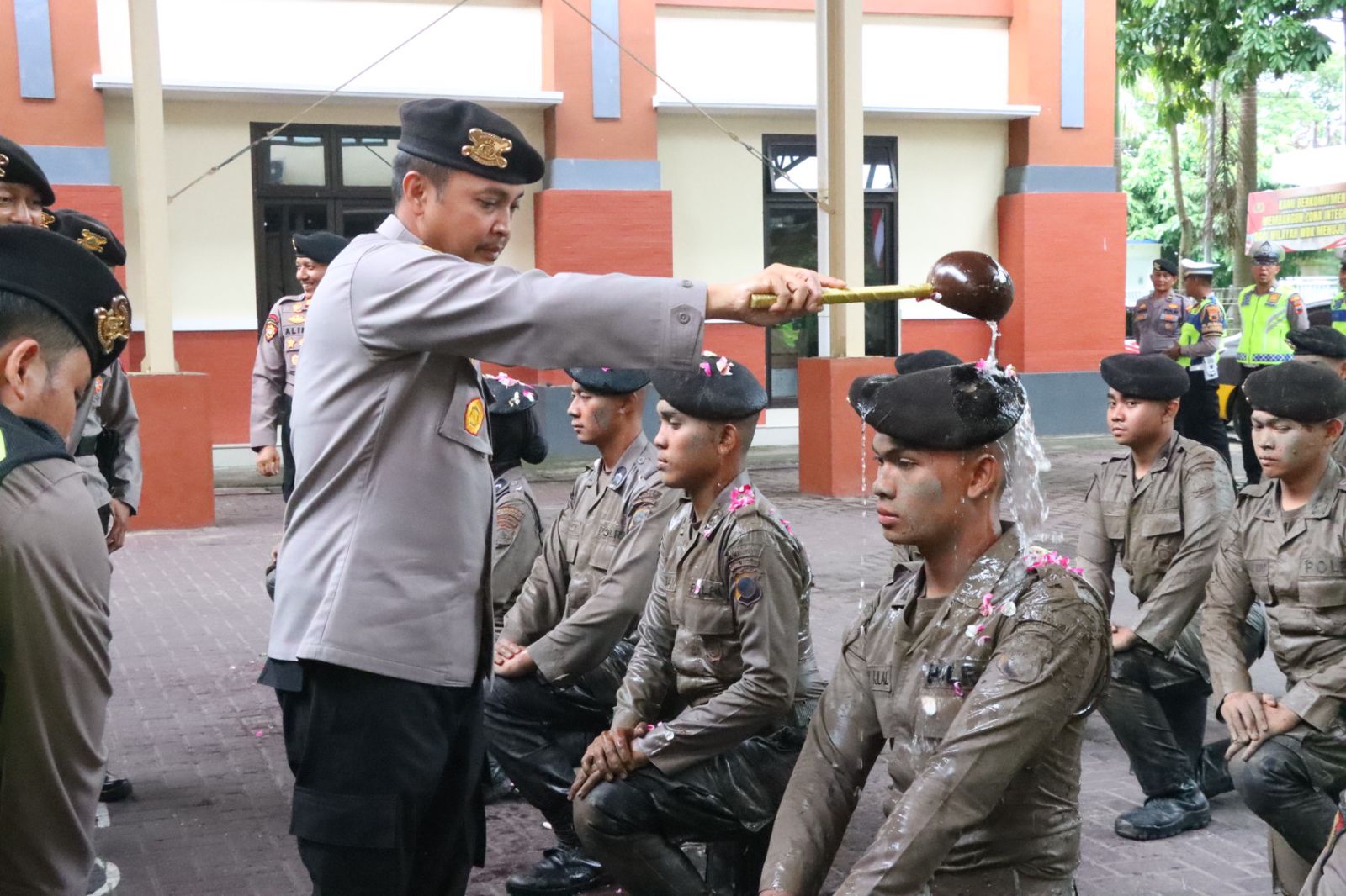 Kapolres Kudus mengguyur para Bintara Remaja usai menuntaskan Pelatihan Fungsi Teknis Samapta--