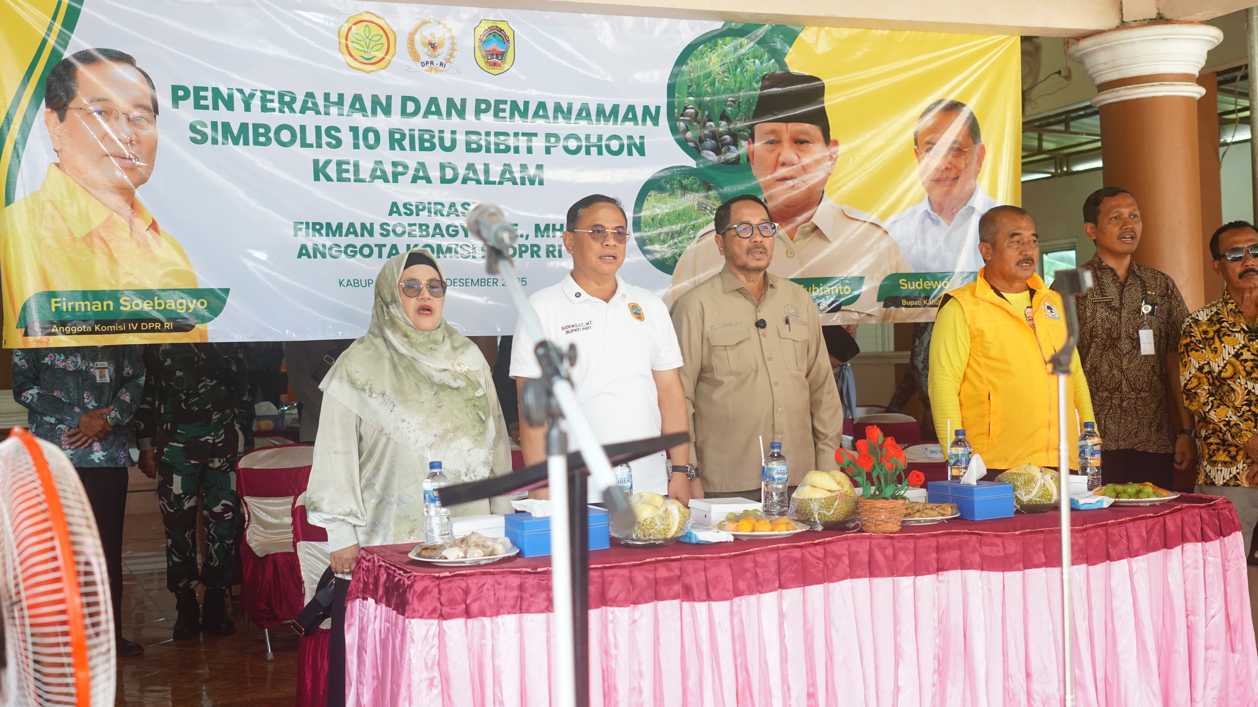 “Hari ini menyerahkan bantuan dari aspirasi DPR RI bersama pemerintah yakni pohon kelapa 10 ribu. Bantuan ini bukan merupakan bantuan yang terakhir, tapi akan berkelanjutan,” ujarnya.