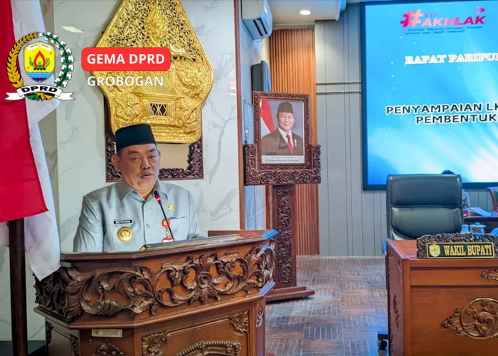 Bupati Grobogan Setyo Hadi menyampaikan penjelasan soal pengajuan dua Raperda dalam rapat paripurna di DPRD Grobogan baru-baru ini. (Achmad Fazeri/Disway Jateng)--