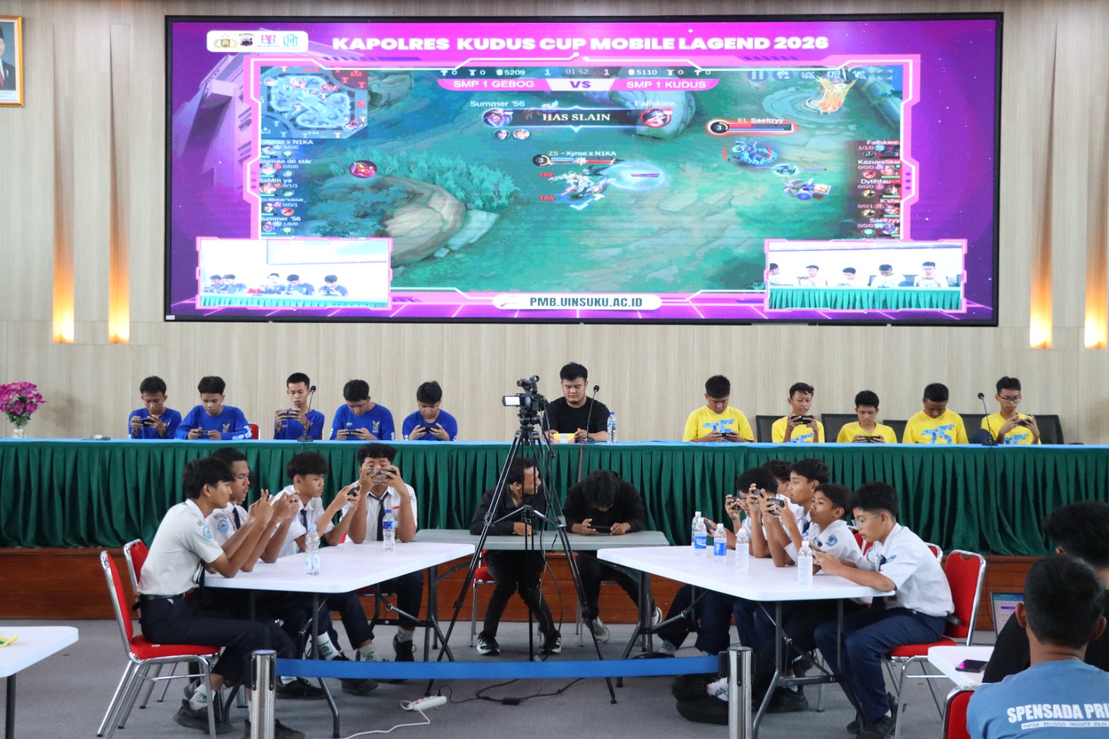 Tak kurang sebanyak 64 tim pelajar dari 32 tim tingkat SMA dan 32 tim tingkat SMP di Kudus, beradu kepiawaian memainkan game online. Kegiatan ini pun mendapat dukungan aparat Polres Kudus.