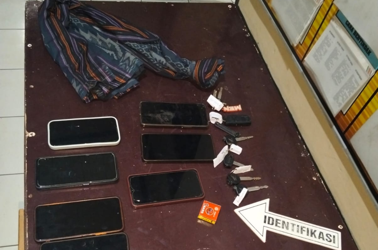 Sejumlah barang bukti yang disita polisi dari tangan para pelaku--