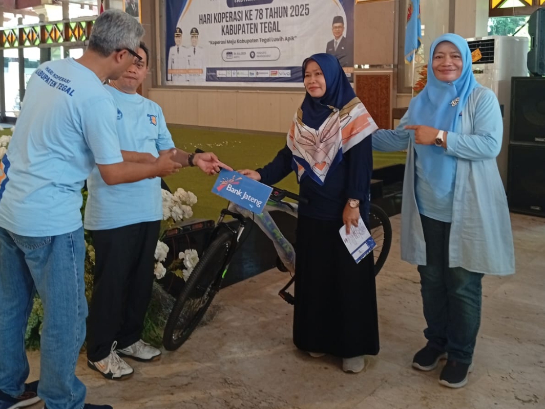 HADIAH - Pemberian hadiah warnai peringatan hari Koperasi 78 tingkat Kabupaten Tegal.Foto: Hermas Purwadi/diswayjateng.id--