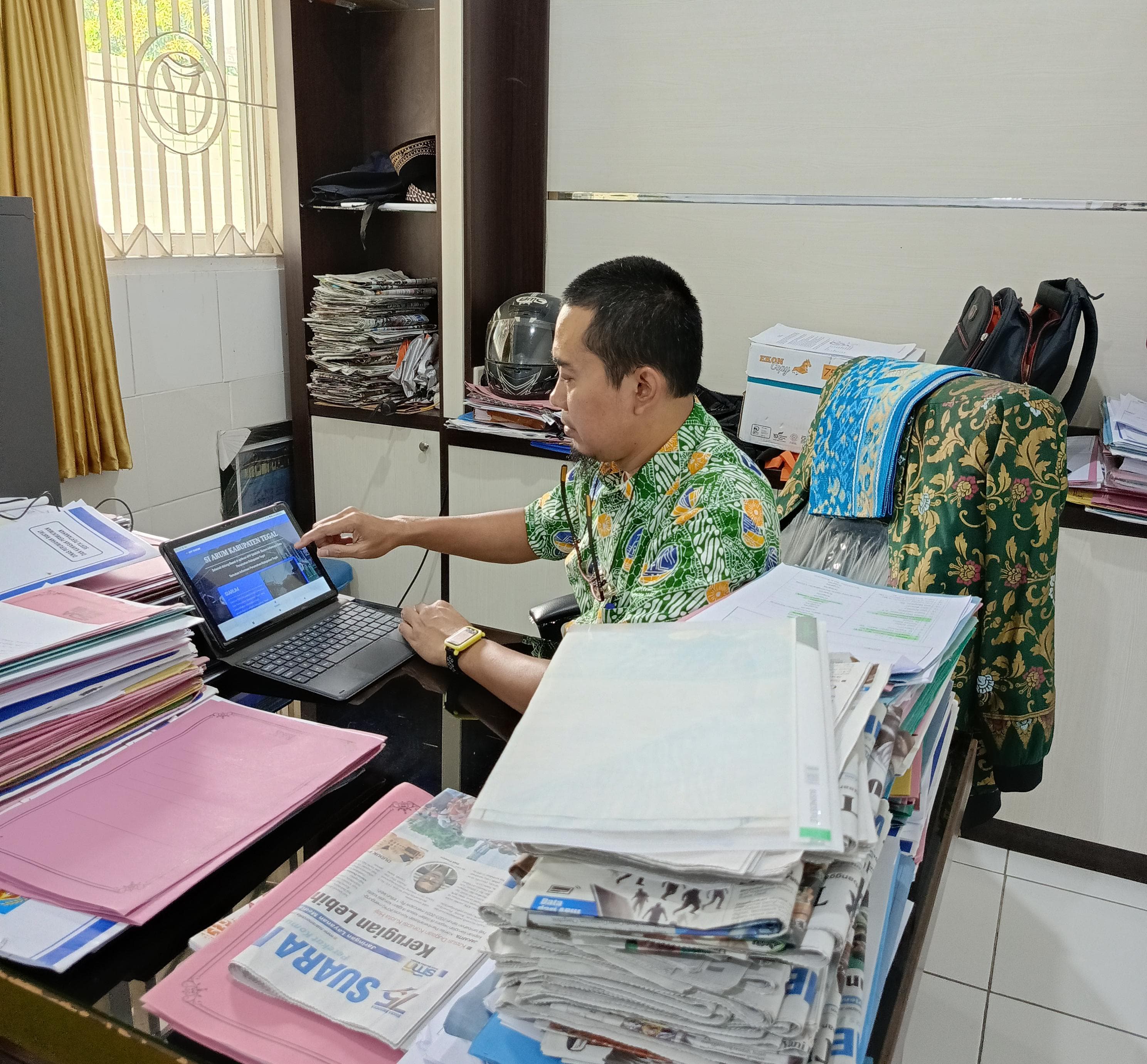 PEMBARUAN - Kabid Perumahan dan Pertanahan Dinas Perkim cermati Sistem Informasi Data Perumahan Kabupaten Tegal.Foto:Hermas Purwadi/diswayjateng.id--