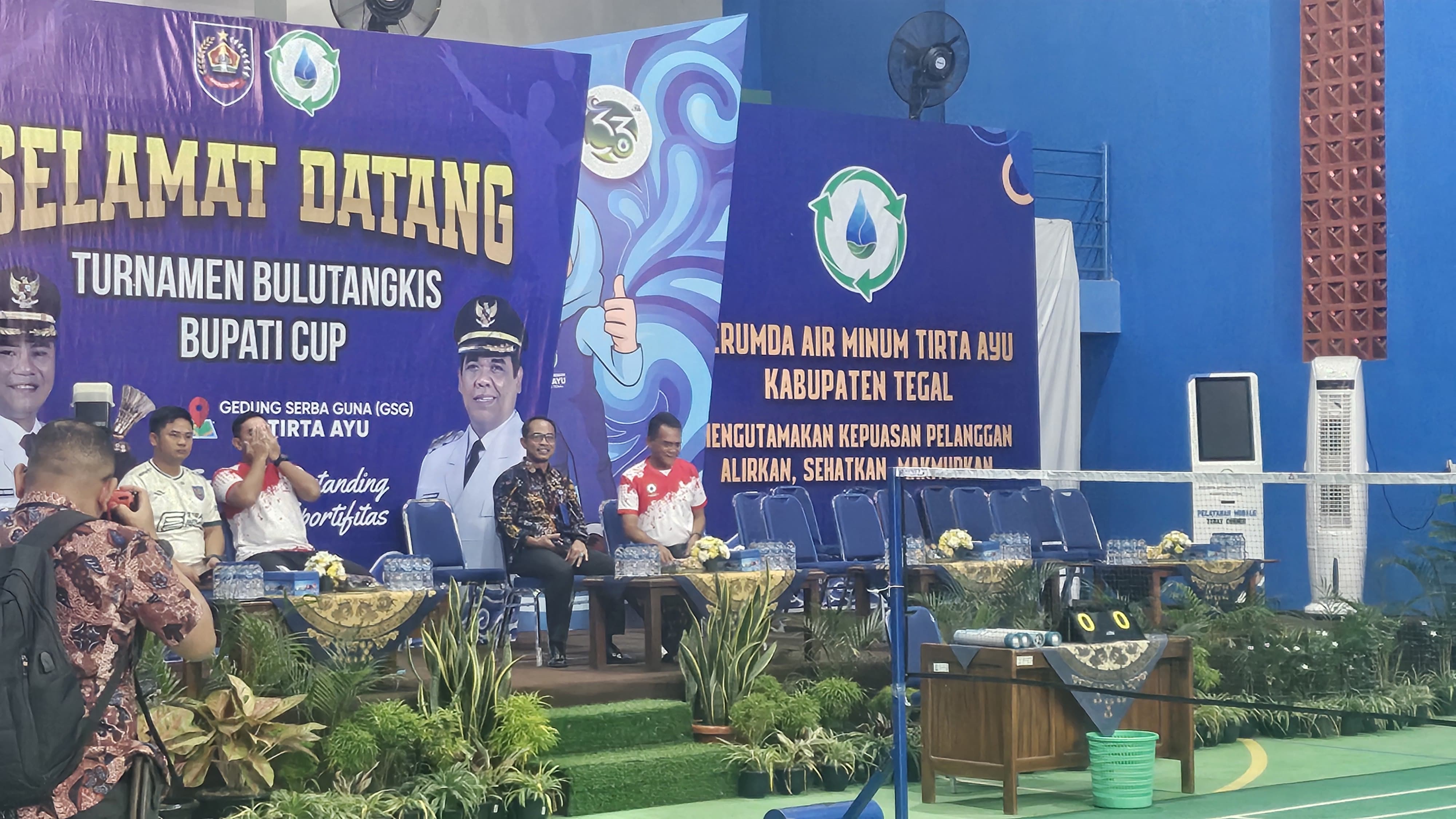 SLAWI, diswayjateng.id - Bertempat di Gedung Serbaguna Perumda Tirta Air Minum Tirta Ayu. Pemkab Tegal melalui Dinas Porapar menggelar turnamen bulutangkis antar Organisasi Perangkat Daerah (OPD) Bupati Cup 2025. Kegiatan ini digulirkan dalam rangka memeriahkan HUT RI ke-80.