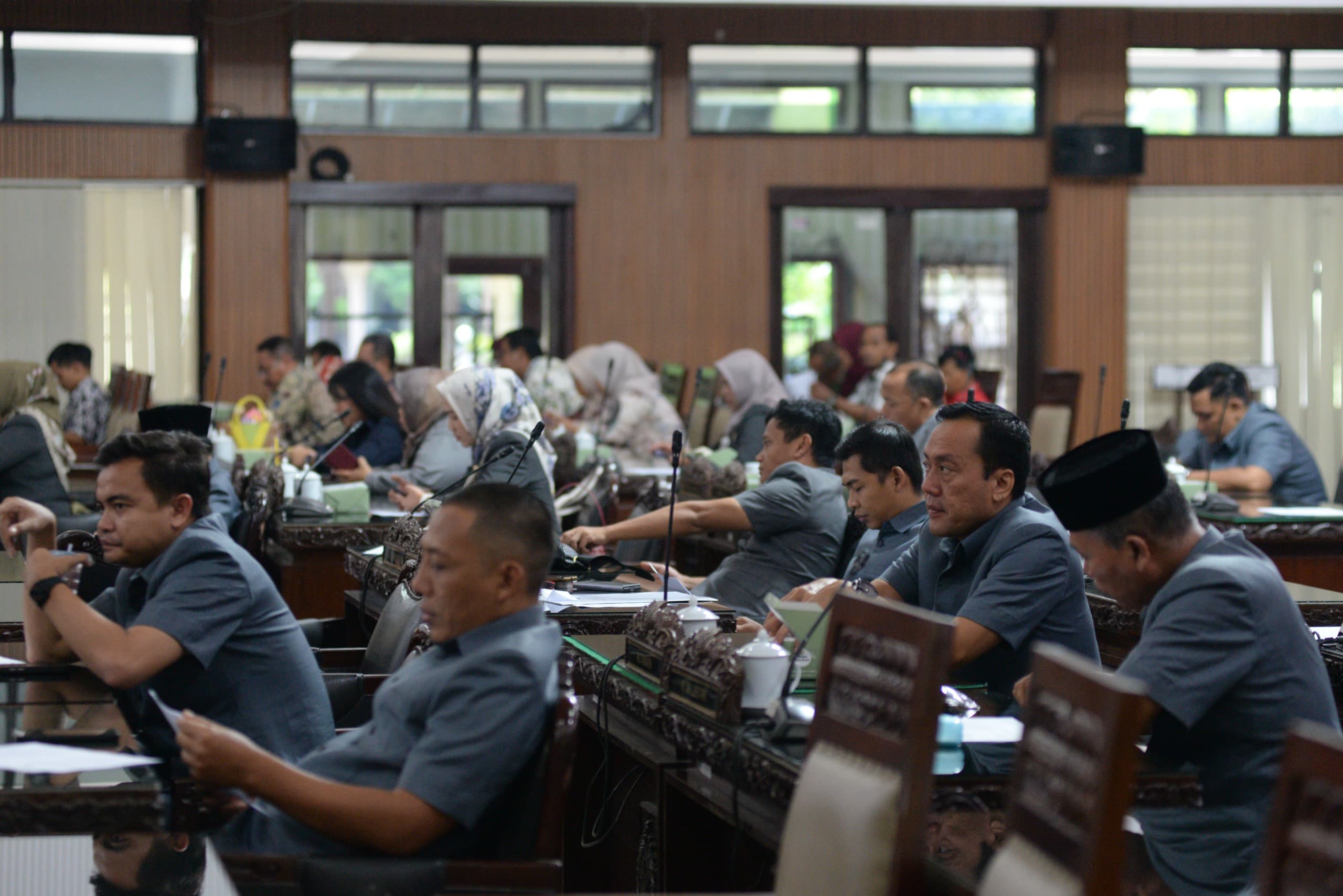 Rapat paripurna tersebut dihadiri Sekda Kabupaten Tegal Amir Makhmud, yang hadir mewakili Bupati Tegal Ischak Maulana Rohman, serta sejumlah anggota DPRD dan kepala organisasi perangkat daerah (OPD).