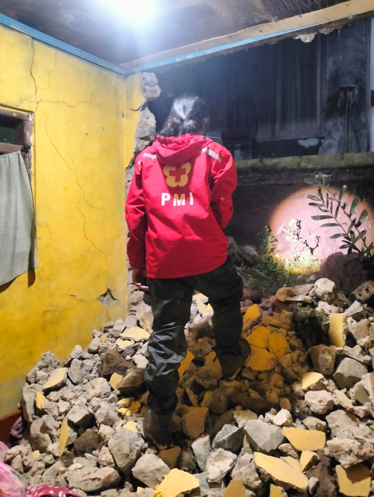 ASESMENT - Tim PMI Kabupaten Tegal saat melakukan asesment rumah terdampak bencana di Desa Rembul, Kecamatan Bojong, Minggu (21/12/2025).--