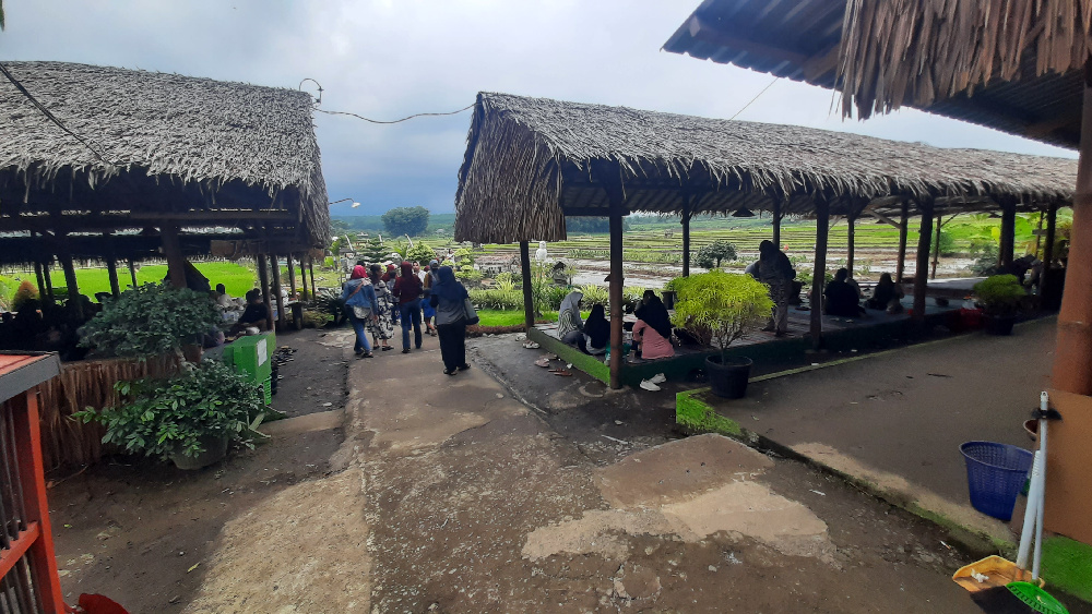 Soto Sawah Mbak Tutik menjadi destinasi wisata kuliner favorit dengan pemandangan sawah dan pegunungan.-Wahyu Sulistiyawan-Wahyu Sulistiyawan