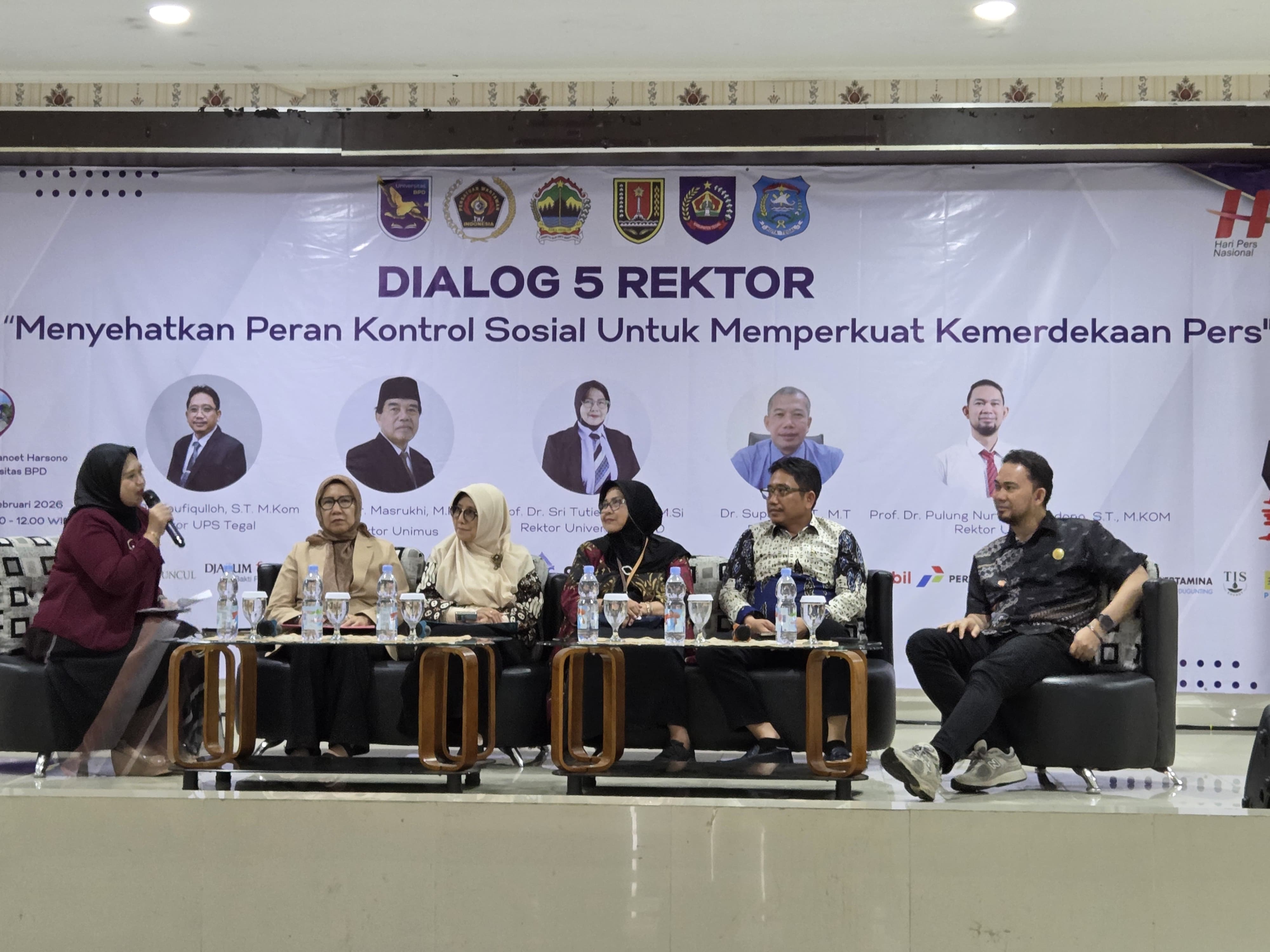 Dialog 5 Rektor ini menjadi bagian dari rangkaian kegiatan HPN 2026 PWI Jawa Tengah yang didukung berbagai mitra yaitu Pemprov Jateng, DPRD Jateng, Baznas Jateng, Dispora Jateng, Pemkot Semarang, Pemkot Tegal, Pemkab Tegal, Bank Indonesia Perwakilan Jawa Tengah, Bank Jateng, Sido Muncul, Semen Gresik, SIG, PLN Unit Induk Distribusi Jateng-DIY, SKKMIGAS, PGN SAKA, TIS Energy, ExxonMobil, Pertamina EP, Pertamina EP Cepu ADK, dan Pertamina PHE Randugunting, Indropolis Batang, dan Bhimasena Power Indonesia.