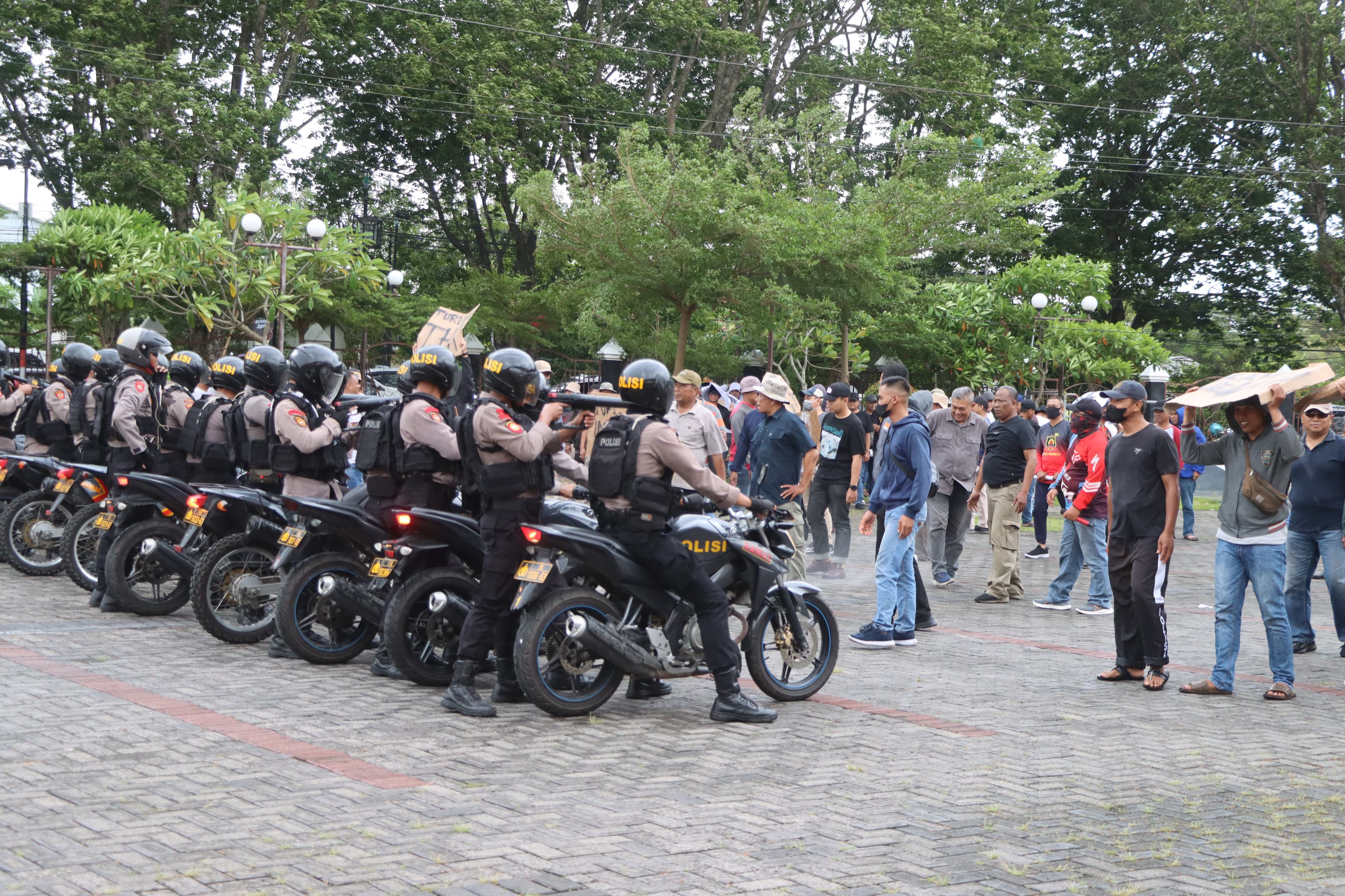 Latihan dilakukan secara bertahap dengan menekankan langkah-langkah persuasif, negosiasi serta pengendalian massa sesuai dengan standar operasional prosedur.