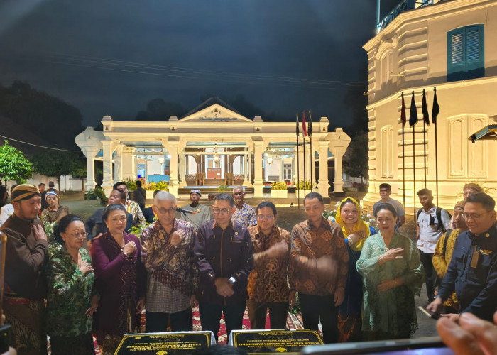 SOLO, diswayjateng.com - Menteri Kebudayaan Fadli Zon meresmikan Panggung Sanggabuwono dan Museum Keraton Surakarta Hadiningrat setelah proses revitalisasi, Selasa 16 Desember 2025, malam. Peresmian dipusatkan di Bangsal Semorokoto, Kompleks Keraton Solo.