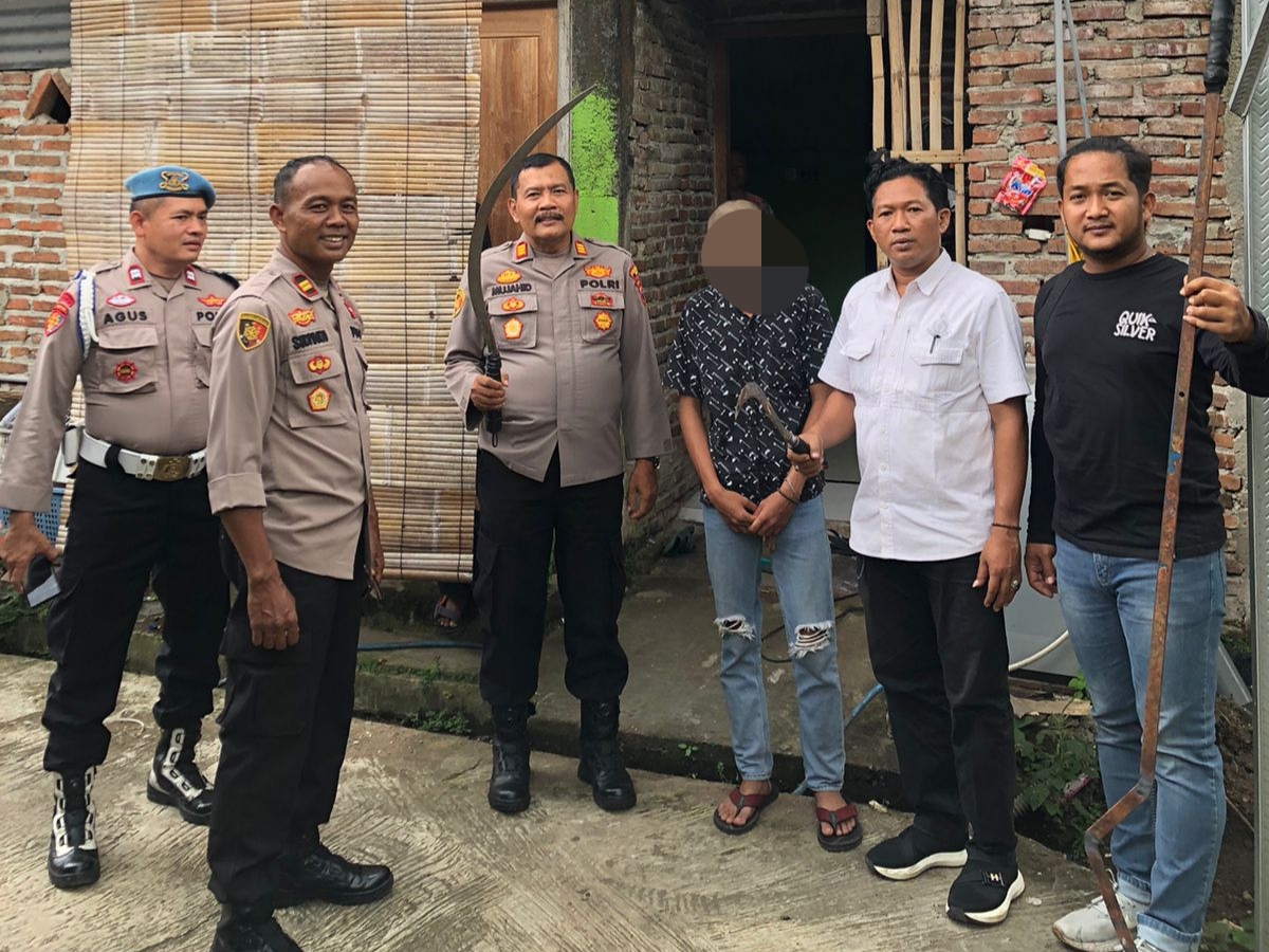 Pelaku gangster dijemput dan diringkus Polsek Tlogowungu dengan barang bukti senjata tajam dirumahnya--