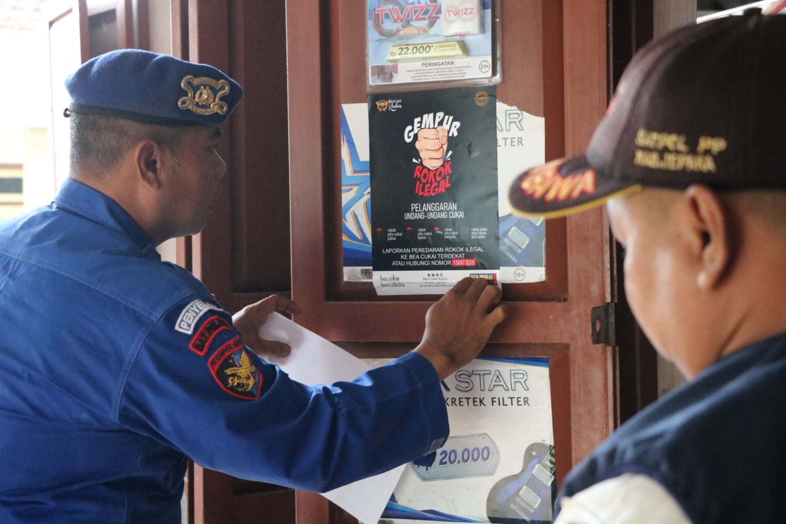 Selain operasi pasar, kegiatan juga disertai penempelan stiker sosialisasi Gerakan Gempur Rokok Ilegal di toko-toko yang dikunjungi.