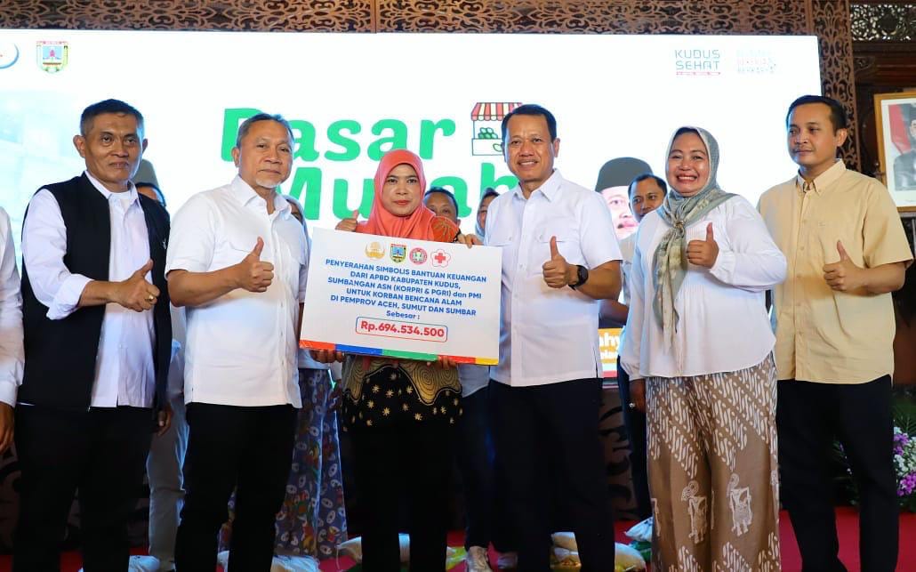 Menko Pangan Zulhas dan Bupati Kudus serahkan bantuan keuangan bencana alam di Sumatra. --